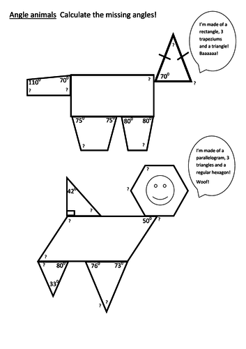 Animal themed math worksheets angles